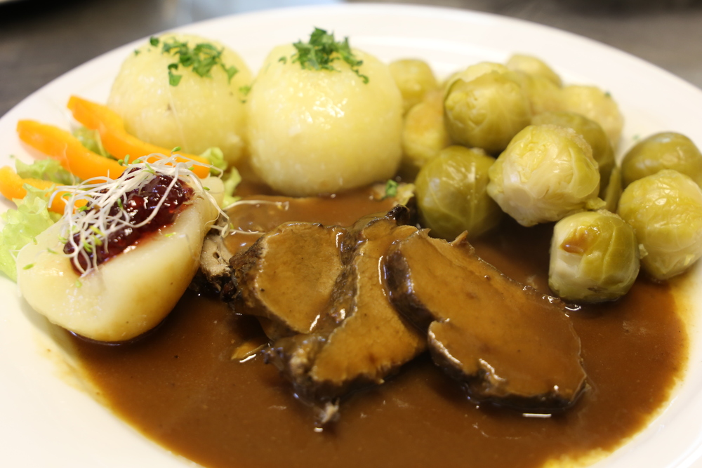 | Sächsisches Krautfleisch Bier-Senfsteak mit Sauerkraut & Schwarzbiersauce im Ofen gebacken, dazu Rösti | 12,10 |